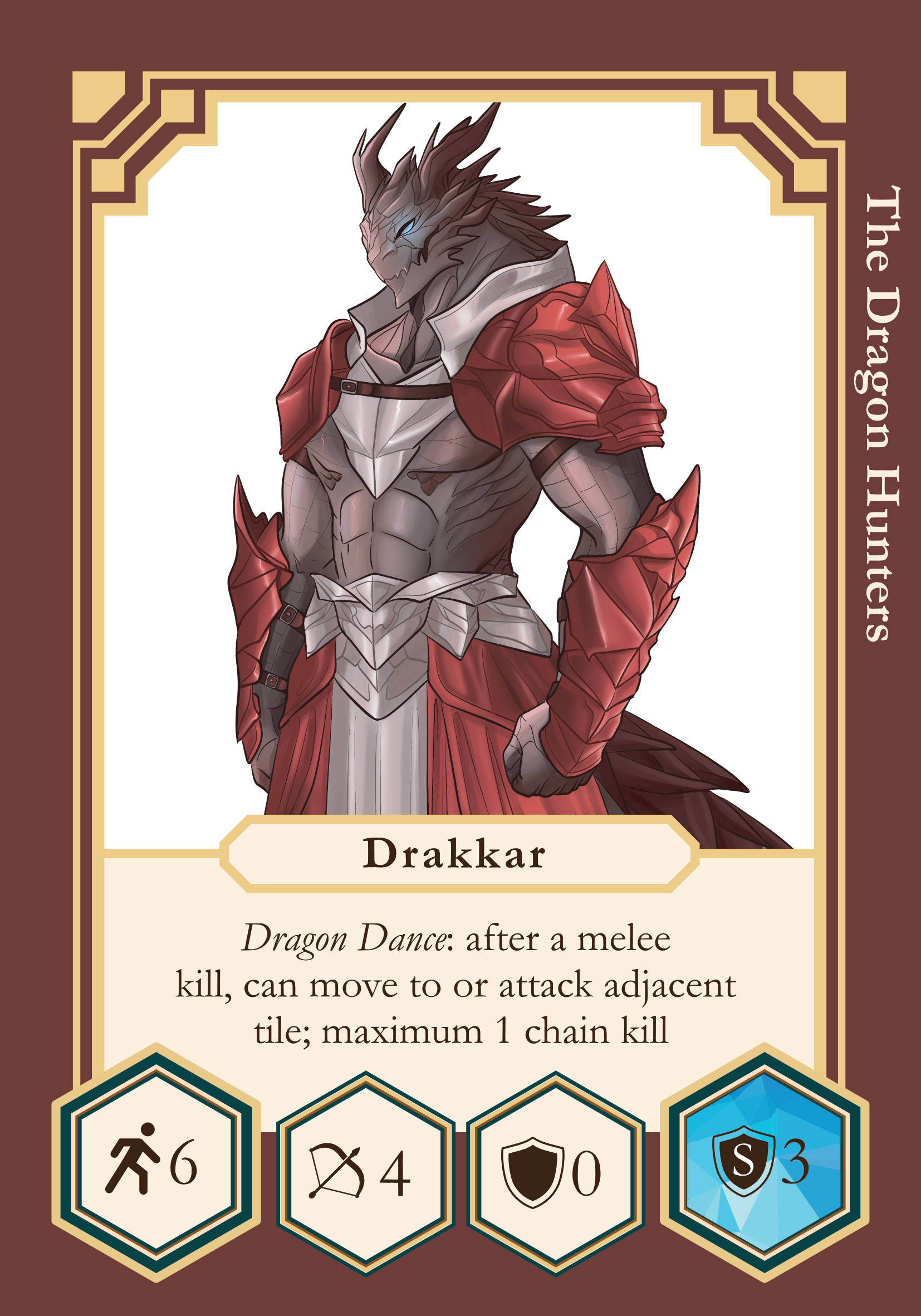 - If Drakkar eliminates a Hero with a melee attack, he occupies the tile of the eliminated Hero, and then he can make an additional move to a tile adjacent to the tile of the eliminated Hero.
