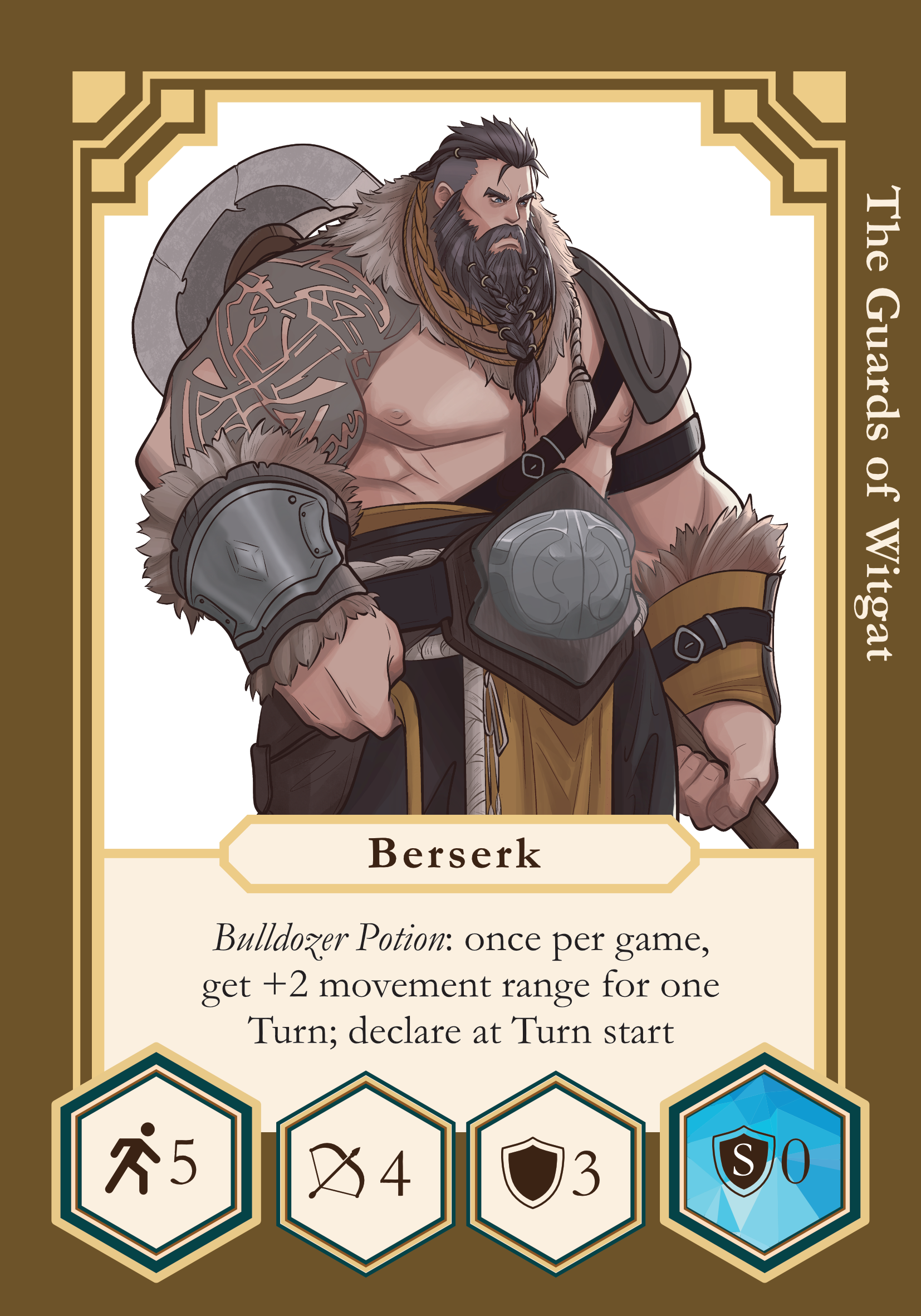 - Berserk has an ability that can be used only once per game. You have to announce that this ability is active before the activations start. Don't forget to put the token of this ability on top of his card to indicate this ability is active.