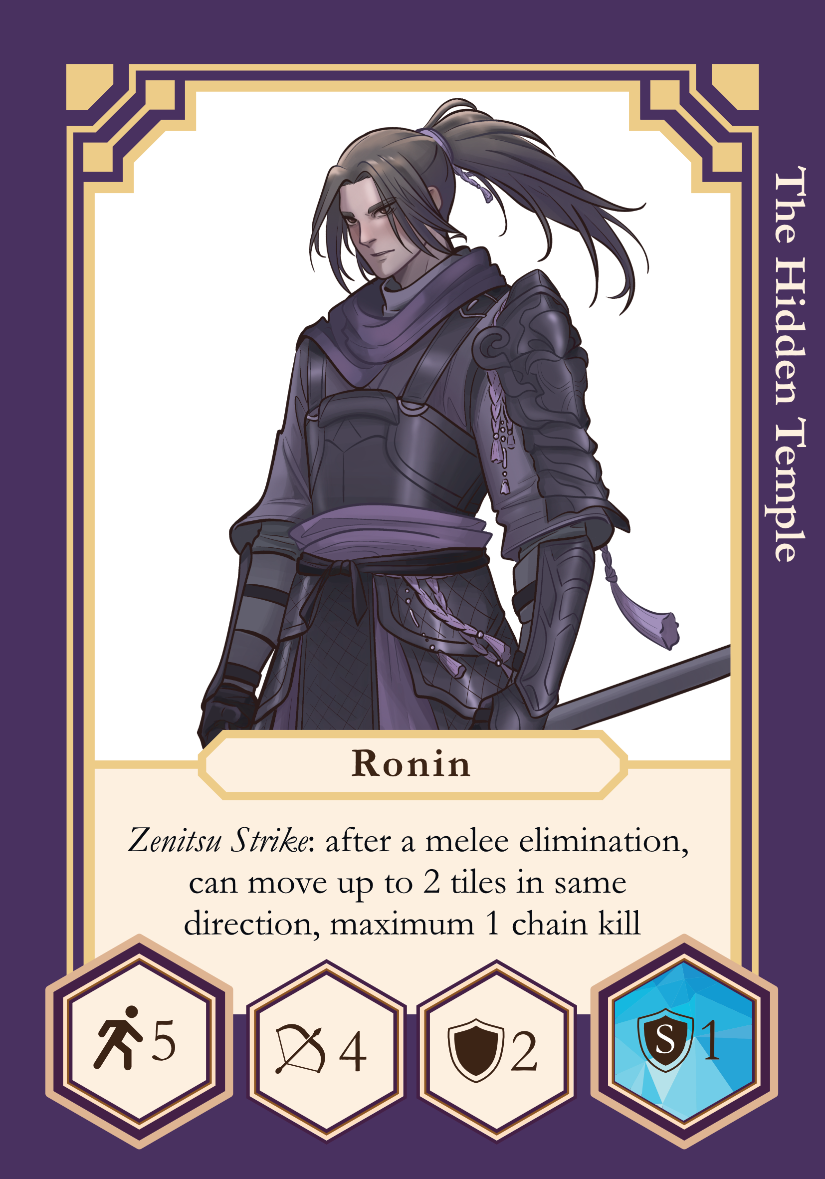 - If Ronin eliminates a Hero with a melee attack, he occupies the tile of the eliminated Hero, and then he can make an additional move in the same direction.