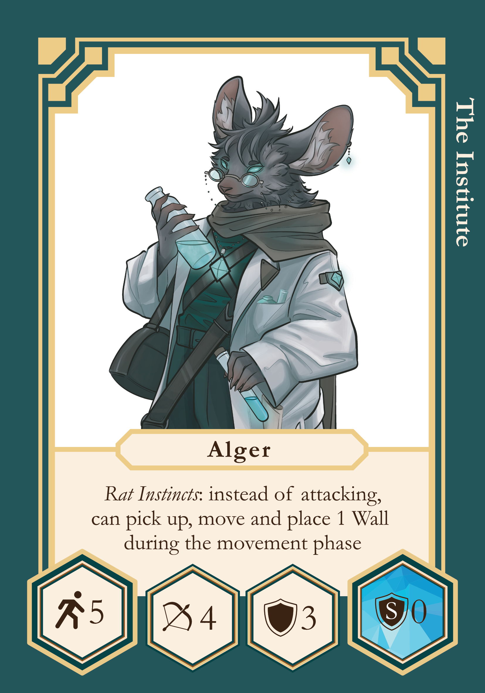 - During Alger's activation, the Institute player has an option to give up Alger's attack and instead get an opportunity to move one Wall token during Alger's movement.