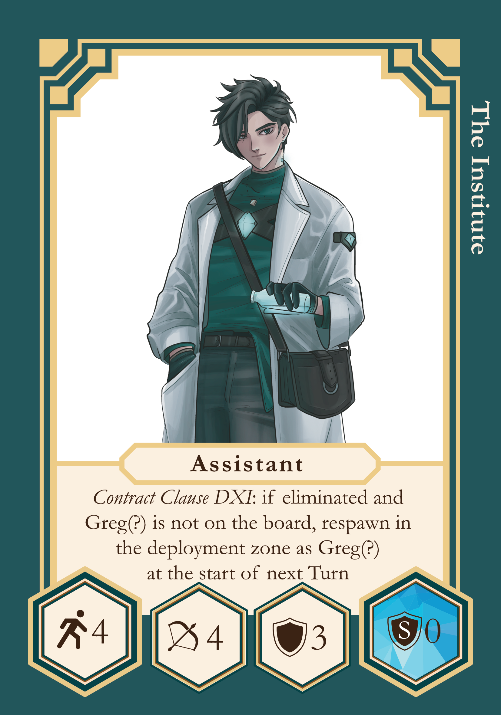 - If Greg(?) is not on the board, or eliminated in the same Turn as Assistant, the Assistant can be brought back to the board as a new Greg(?). At the start of next Turn, during the declaration of Pre-Turn abilities, you can redeploy Greg(?) with full set of Armor on any tile of the initial deployment zone.