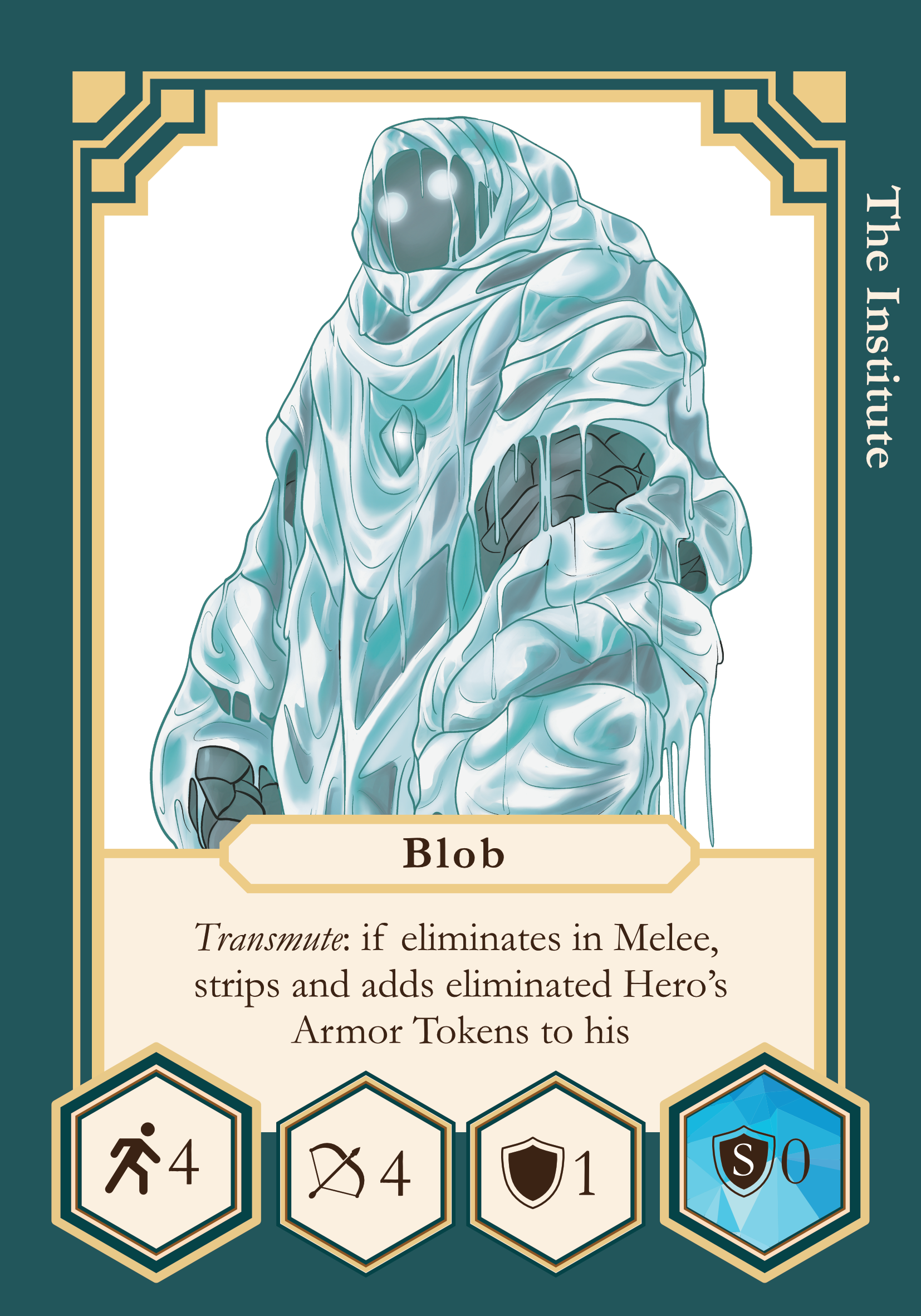 - After Blob eliminates enemy Hero with a melee attack, he can add all Armor tokens of the eliminated Hero to any side of his base, or swap existing Regular armor tokens for Superior armor tokens of eliminated Hero.