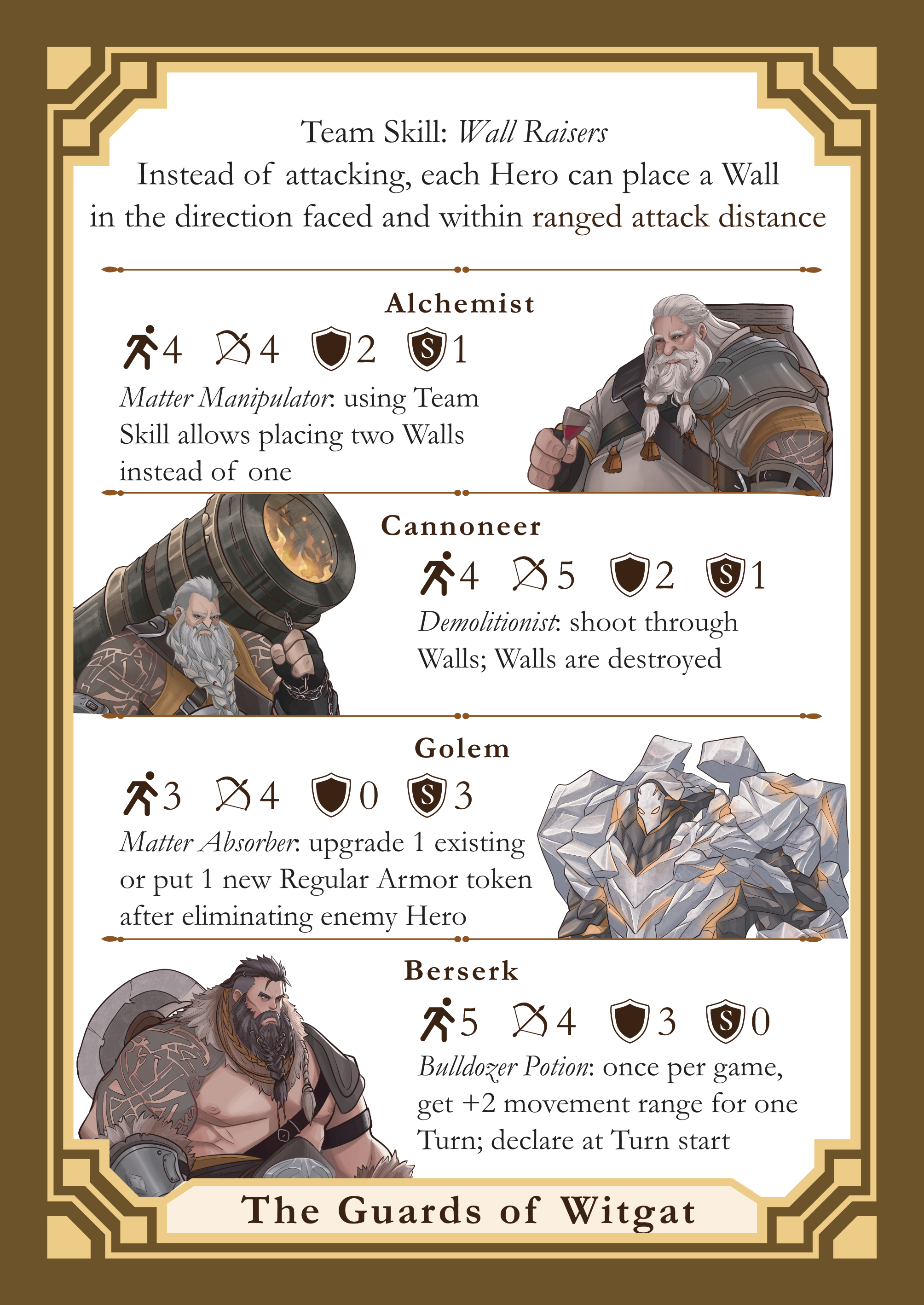 - Each Hero in the Guards of Witgat team can place a Wall token instead of attacking.